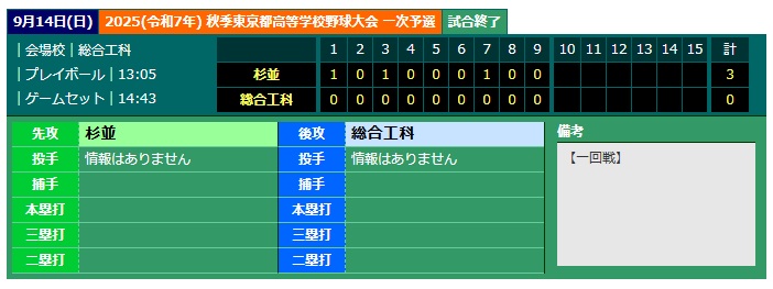 令和7(2025)年度 秋季東京都高等学校野球大会 一次予選 ![]() |